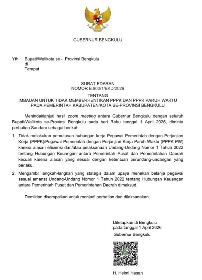Gubernur Terbitkan Edaran, Larang PHK PPPK di Tengah Efisiensi Anggaran