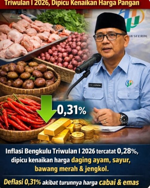 Inflasi Bengkulu 0,28 Persen Triwulan I 2026, Dipicu Kenaikan Harga Pangan