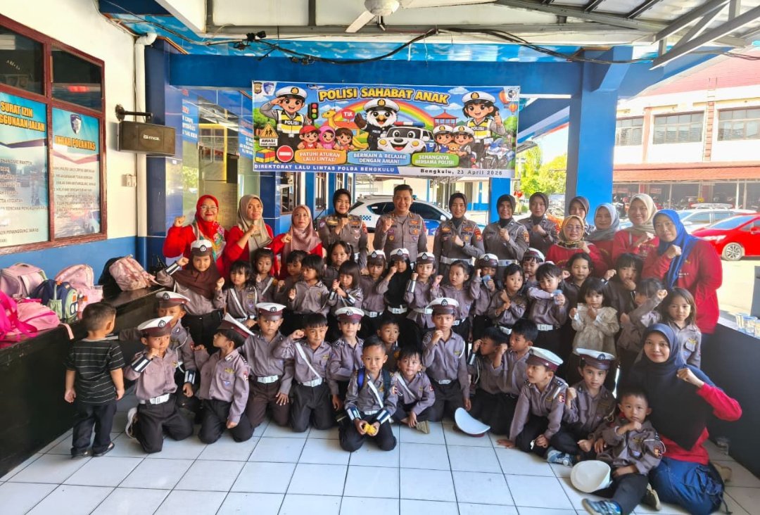 Ditlantas Polda Bengkulu Ajarkan Tertib Lalu Lintas ke Siswa TK Pembina 1 Lewat Program Polsanak