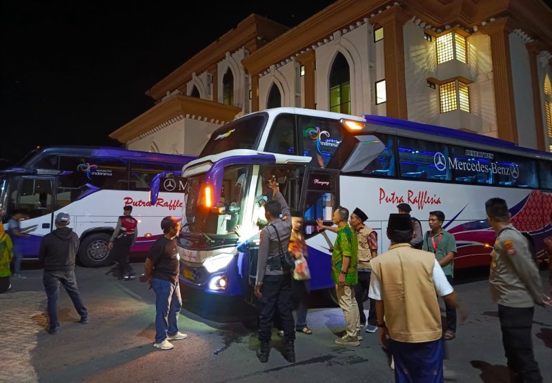 Tak Hanya Melaksanakan Pengamanan, Polresta Bengkulu Bantu Angkat Barang Bawaan Jamaah Haji