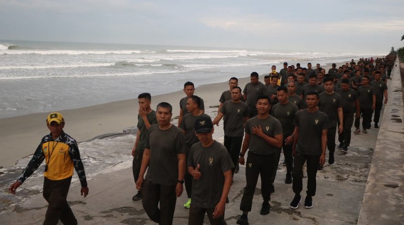 Danrem 041/Gamas Brigjen TNI Jatmiko Aryanto Pimpin Jalan Santai Bersama Prajurit di Pantai Panjang Bengkulu