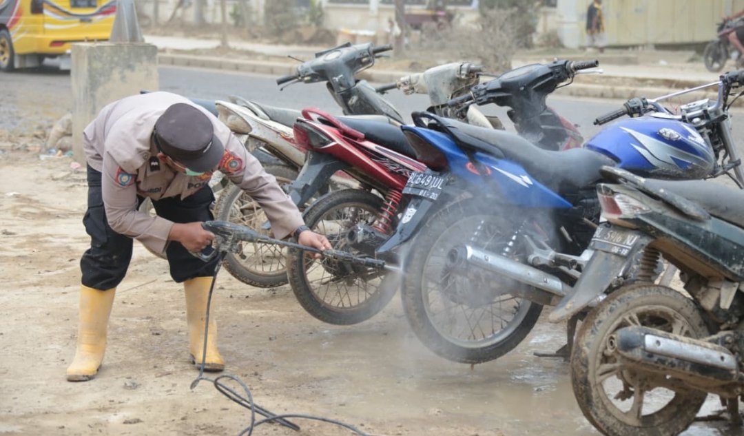 Bengkel dan Cuci Motor Mobile Polres Aceh Tamiang Untuk Masyarakat Terdampak Banjir