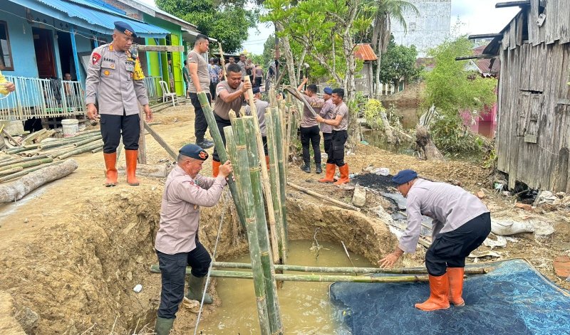 LANGKAT – Personel Batalyon-A Sat Brimob Polda Sumut kembali menunjukkan komitmennya dalam penanganan bencana dengan melanjutkan perbaikan tanggul yang jebol di Kampung Pagar, Lingkungan II, Kecamatan Tanjung Pura, Kabupaten Langkat.