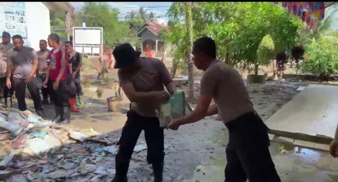 Dukungan Pendidikan Pulih Cepat Pascabanjir, Polres Pidie Jaya Bersihkan Sekolah MIN 1