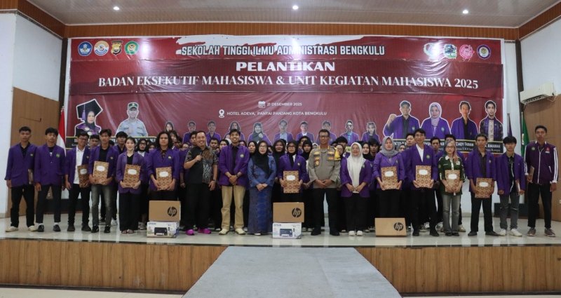 KOTA BENGKULU – Kapolresta Bengkulu Kombes Pol Sudarno, S.Sos., M.H menghadiri kegiatan Pelantikan Badan Eksekutif Mahasiswa (BEM) dan Unit Kegiatan Mahasiswa (UKM) Sekolah Tinggi Ilmu Administrasi (STIA) Bengkulu Tahun 2025 yang dilaksanakan di Hotel Adeva Bengkulu, Minggu (21/12/2025).