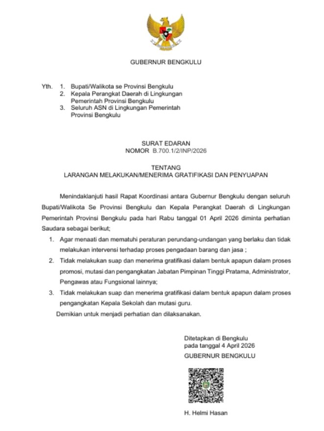 Bengkulu- Terpantau pada Selasa (14/1/2025) pukul 09.00 WIB, sejumlah pejabat eselon II dan III di lingkungan Pemerintah Provinsi Bengkulu memasuki Gedung Polresta Bengkulu. Kehadiran mereka merupakan tindak lanjut atas panggilan penyidik Komisi Pemberantasan Korupsi (KPK) untuk memberikan keterangan sebagai saksi dalam kasus dugaan pemerasan dan gratifikasi yang melibatkan Rohidin Mersyah, gubernur Bengkulu nonaktif, dan beberapa pihak lainnya.