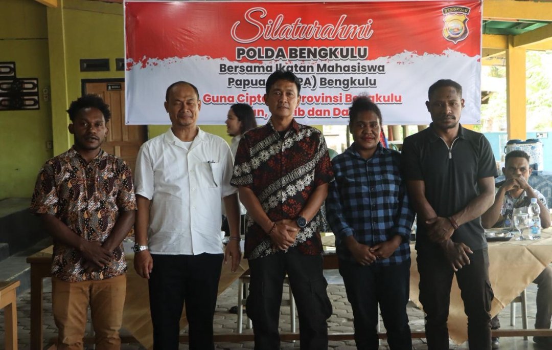 BENGKULU – Dalam semangat mempererat persaudaraan dan memperkuat komunikasi antara aparat kepolisian dengan kalangan akademisi, Polda Bengkulu menggelar kegiatan silaturahmi bersama Ikatan Mahasiswa Papua (IMAPA) Bengkulu, Jumat (17/10/2025) di Pondok Ambo, Jalan Bencoolen, Kelurahan Pasar Bengkulu, Kecamatan Sungai Serut, Kota Bengkulu.