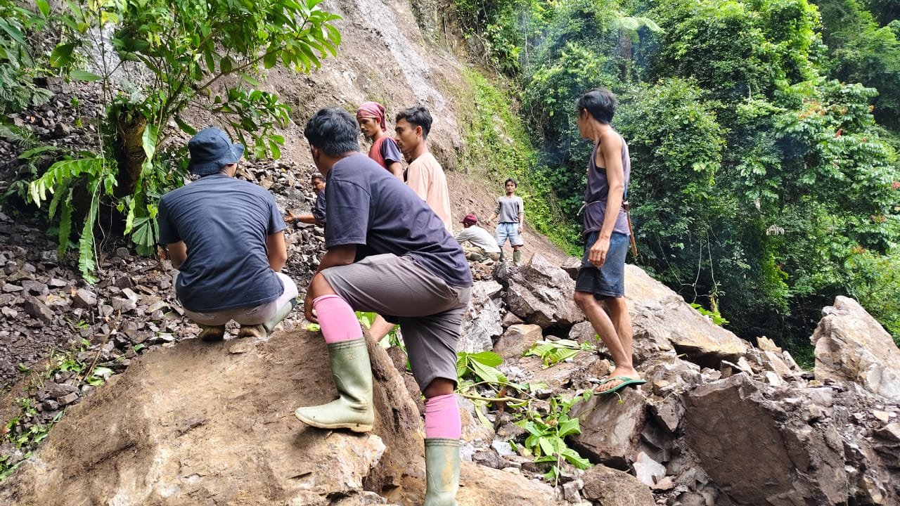 Warga yang hendak beraktivitas terpaksa menempuh jalur alternatif melalui jalan TMMD, meski akses ini juga bergantung pada kondisi cuaca.